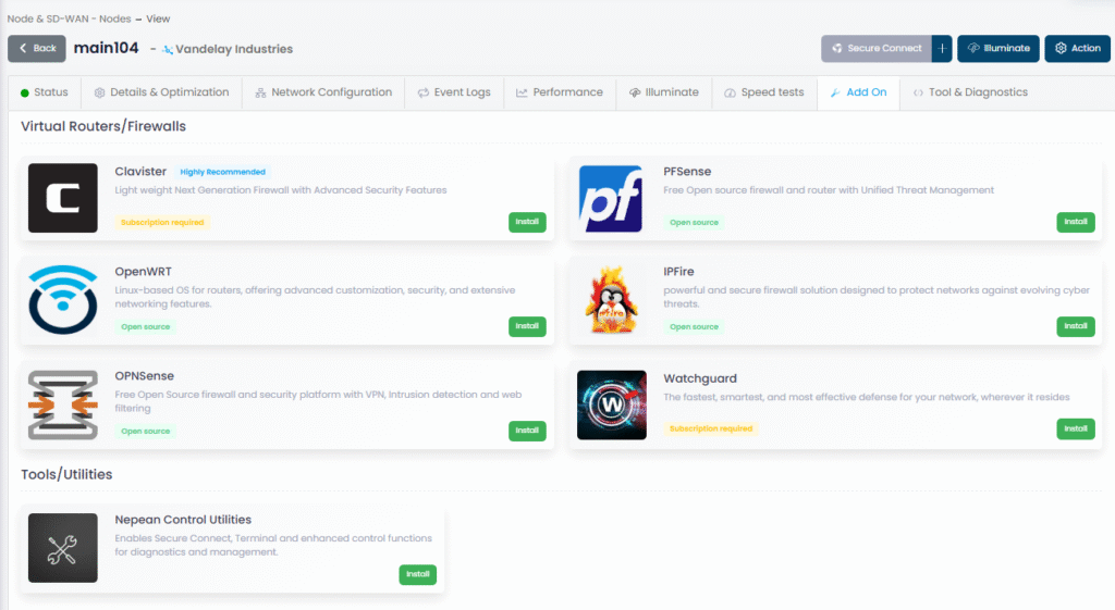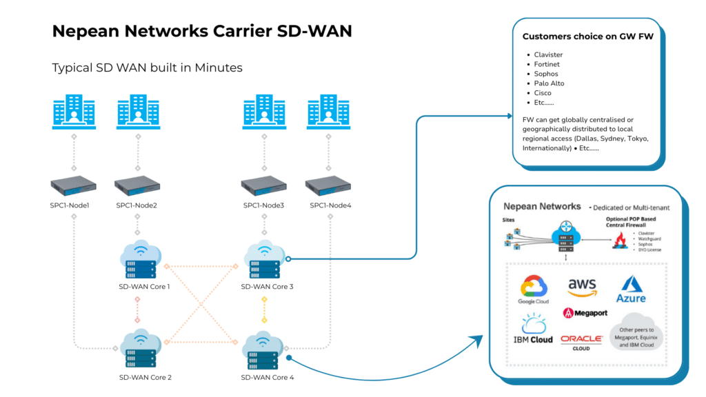 In today’s dynamic digital landscape, Managed Service Providers (MSPs) require flexible, robust, and secure networking solutions to meet diverse client needs. Nepean Networks offers an SD-WAN platform that not only ensures optimal connectivity but also provides unparalleled freedom in security implementations. Our vendor-agnostic approach allows MSPs to integrate their preferred firewall solutions, both within our core infrastructure and at endpoint nodes, ensuring tailored security without compromise.